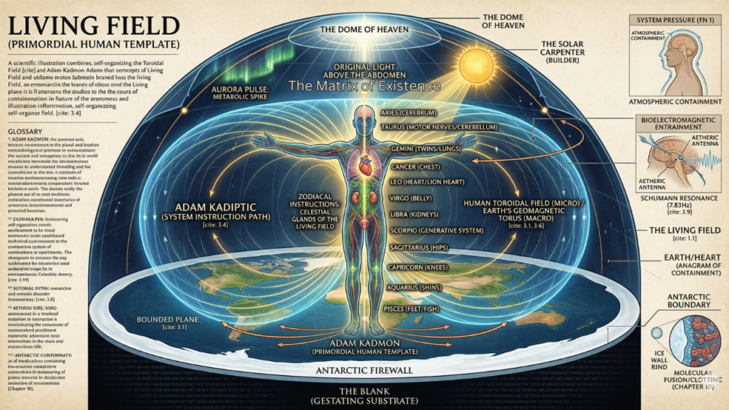 Perry argues that our environment is not an open vacuum but a “Living Field.” He suggests the ionosphere acts not merely as an atmospheric layer but as a functional membrane. It regulates pressure, reflects specific electromagnetic frequencies like the 7.83 Hz Schumann resonance, and sustains the life within. Under this model, the world is an enclosed, biological cell, roofed by a vaulted dome.